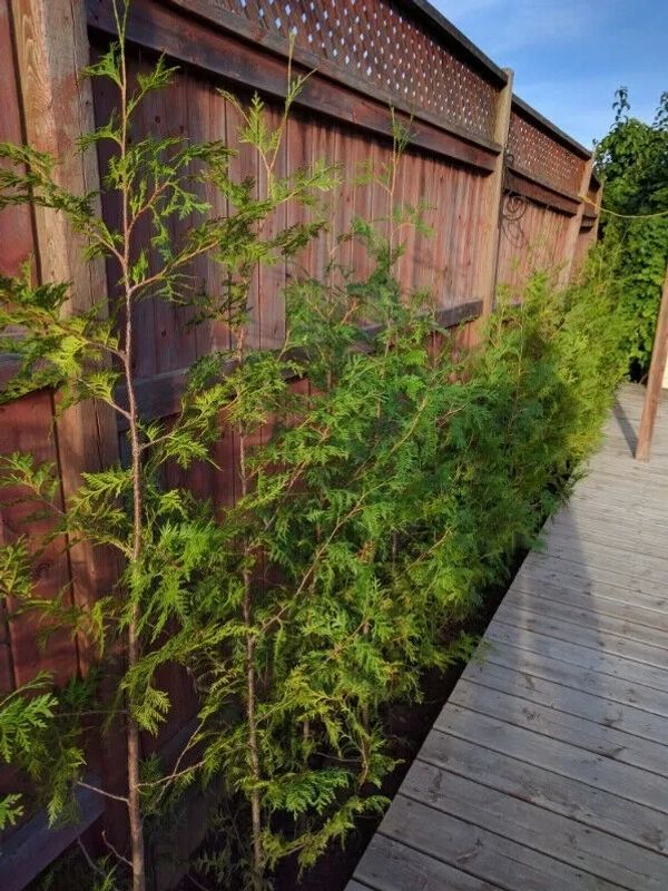 Emerald cedars are beautiful, dominant, ornamental trees. They are not hedge trees and will never grow together. A clump of three in the corner of a front yard or spaced several feet apart if front of a wooden fence can look great. However, if you plant them close together in a hedge formation, you will have a row of expensive trees, not a hedge. And because they are not suited for this growing region, every year that row will be dotted with golden brown ones that are supposed to be green.